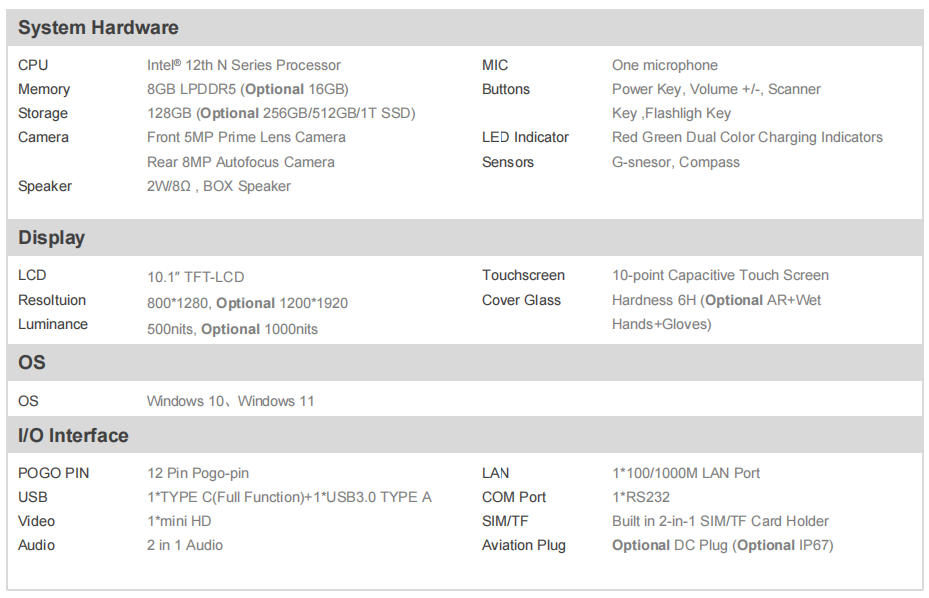TYPE-C/ USB 3.0/ COM/ LAN/ Mini HDMI/ TF Card